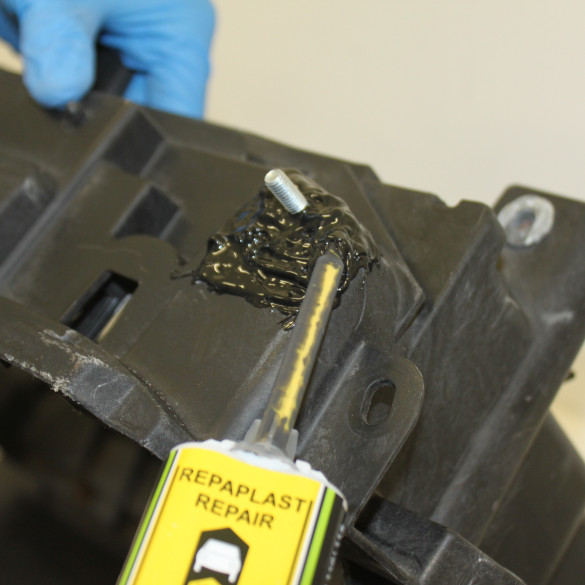 Zur Reparatur von Löchern und Rissen in Polyester, Holz, Glas, Stein, Beton und Kunststoffteilen (zB. PUR, PP, TPO, RIM, TPUR), wie Stoßstangen, Spoilern, Schwellern, Verbreiterungen, Spiegelgehäusen, Arbeitsplatten, Sportgeräten, Abdeckungen usw.